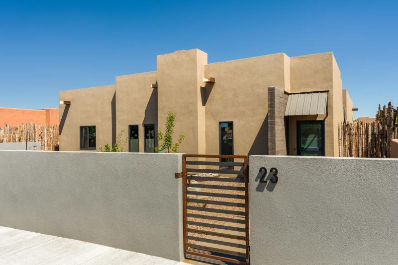 SOLD! - Downtown Santa Fe: Elegant & Refined, free standing condominium in Pristine, Move-in Condition. Built in 2015, this beautiful True North designed Adobe has all of the amenities you desire on the Eastside of Downtown Santa Fe: Northern NM Pitched Roof style, Single level, soaring ceilings with light colored natural wood, plaster walls, and earth toned stained concrete flooring. Two bedrooms are located on either end of the living area. The "Great Room" is open and includes a spacious modern kitchen, dining area, and comfortable living space to enjoy quiet evenings in front of the wood burning fireplace. A spacious entry mud room functions as closet and small storage for gear & seasonal items, separate laundry. The private and fully enclosed back yard allows for intimate gatherings surrounded by native plants and shrubs. All City utilities, Mini Splits for Cooling, in floor radiant heat, contemporary lighting and fixtures. Single car covered carport is attached. MLS 202502533 $1,425,000.00