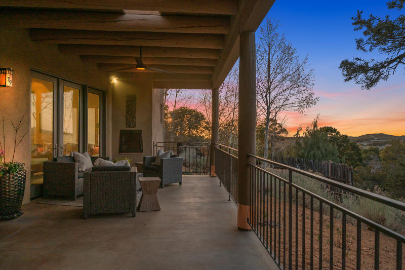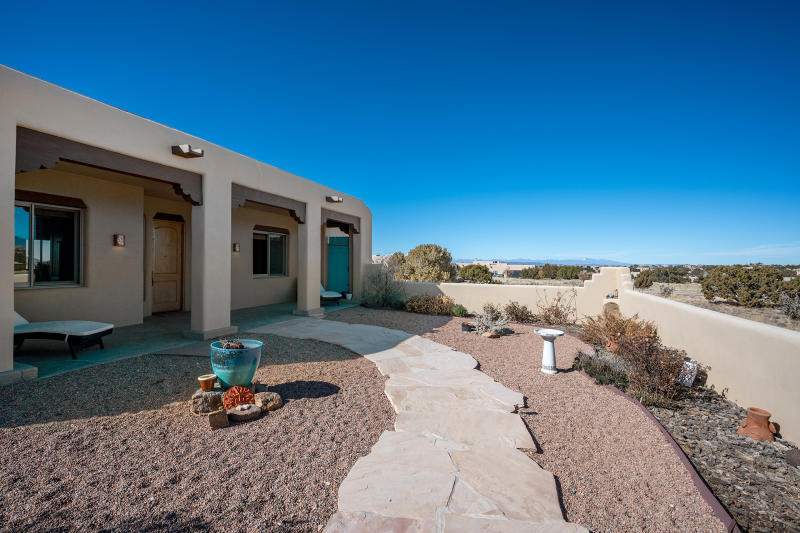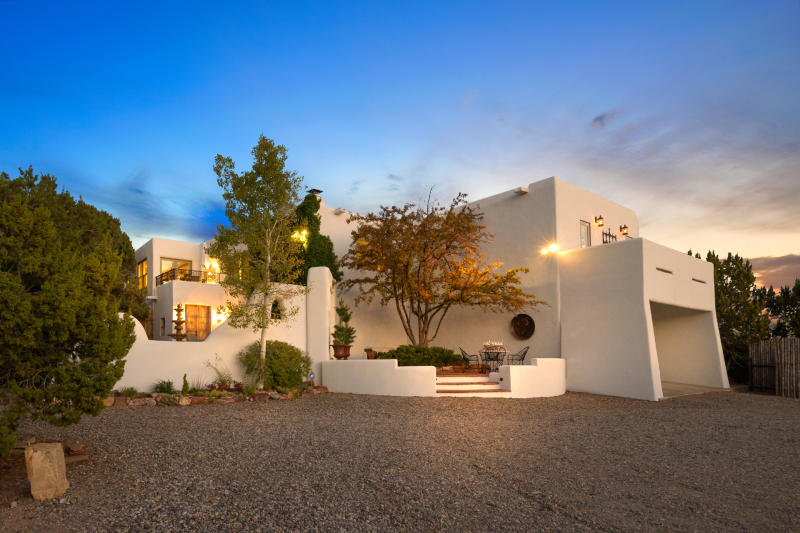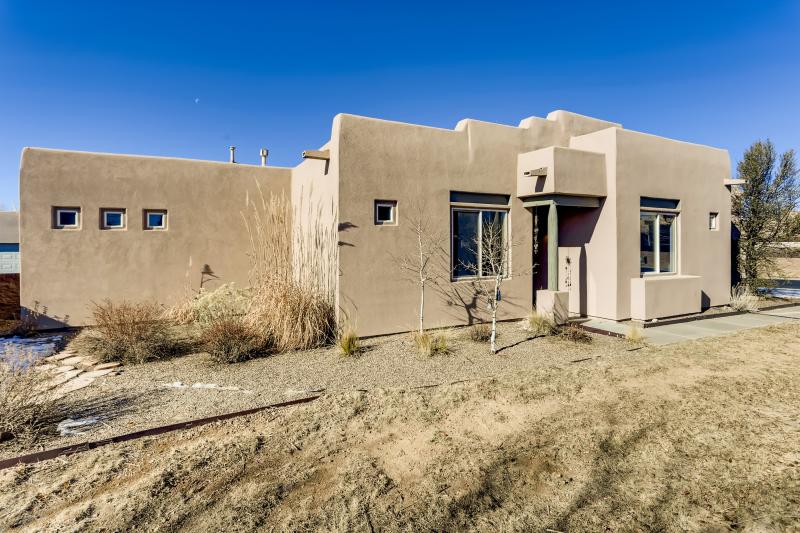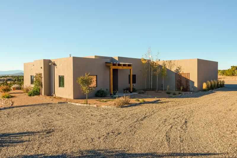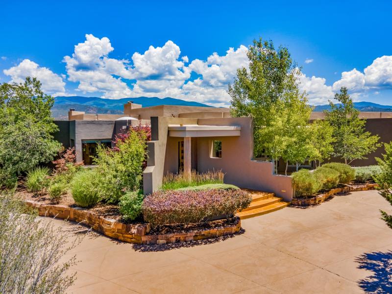 SOLD - Exceptional SW Contemporary, Single level home with separate Guest Casita in Monte Sereno offers peaceful luxury, Outstanding Sangre de Cristo Mountain Views & coveted privacy in a serene Location just minutes to town. Every detail has been expertly considered and the current owner has made impeccable enhancements over the years. Main House: Two, well appointed Ensuite bedrooms, beautiful stained concrete flooring in living areas, a dedicated office/3rd room with built-ins (for guests, yoga/meditation space & more), and a true gourmand's kitchen. The open living & dining areas are bathed in natural light with large sliding glass doors allowing for indoor/outdoor entertaining and to take in the exquisite views.