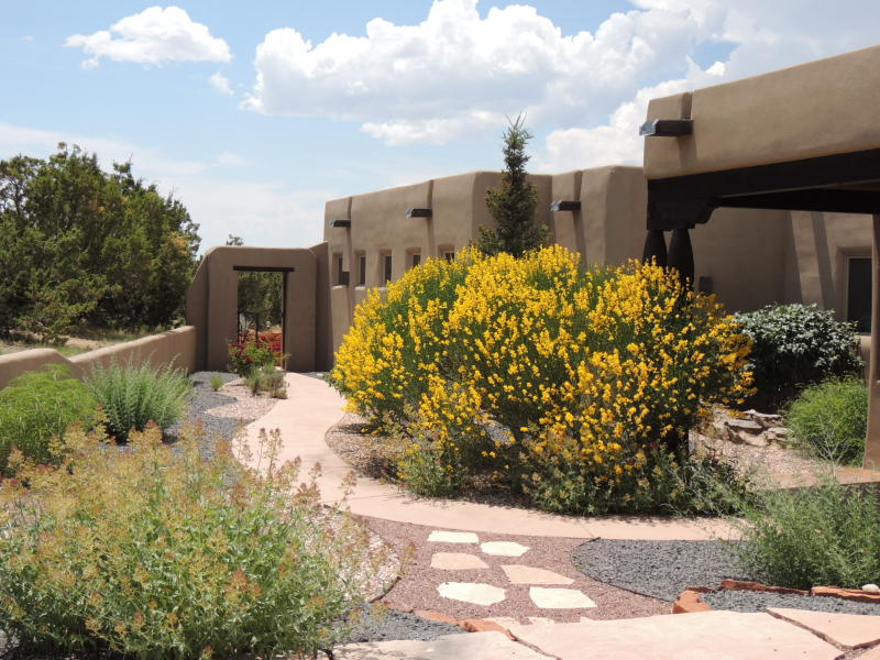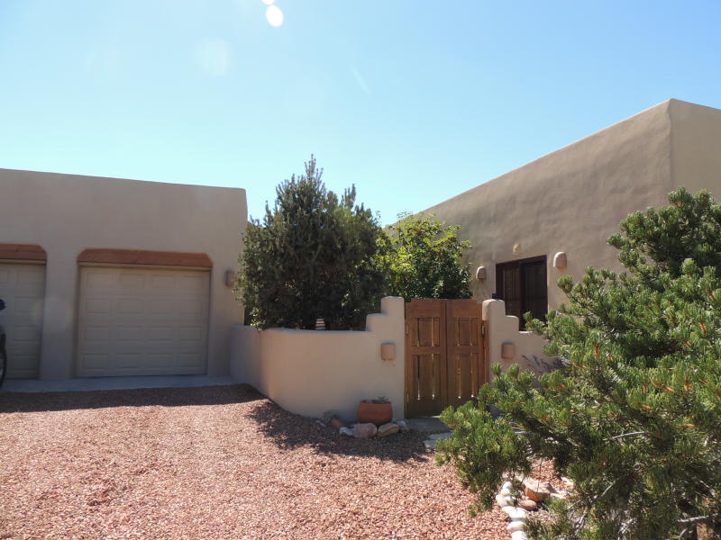 Gorgeous landscaping, completely fenced & spacious back yard, and a Finished 3 car garage. Plentiful natural light. Landscaping is mature and well tended, drip system in place. Serene, natural spaces to enjoy the garden abound. Beams, lovely wood cabinetry, sensible floor plan - single level elegance with Santa Fe charm. $524,000.00 MLS#201503622