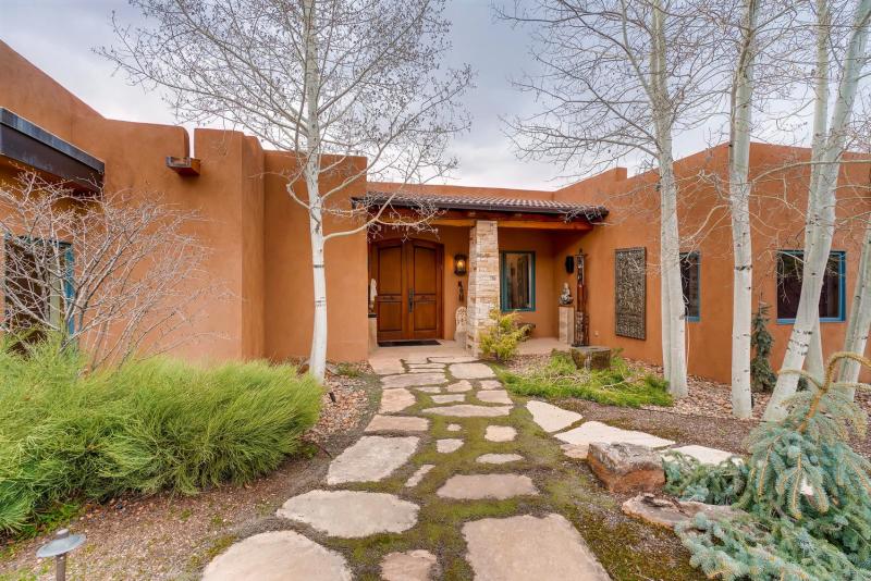 SOLD!:Stunning Residence with stylish and tasteful upgrades -- a "Modern Adaptation of Santa Fe Style" that fits in perfectly with the natural landscape and light of Santa Fe, is close to Downtown, offers spacious areas to entertain, and all of the privacy 1 acre of land affords. North of Plaza area the property offers many beautiful indoor & outdoor spaces to enjoy with and take in Sunset and mountain views. Four bedrooms, 4200+ sq feet, Views from large landscaped garden, two terraces. Decorative porcelain tile in the foyer, spacious guest living area with fireplace, cozy bedroom, full bath, and a row of glass doors overlooking the entry courtyard. A grand stairwell leads to beautifully appointed bedrooms with tile, hardwood, and/or Sisal floors, custom closet doors & light fixtures, and large windows that add natural light. All on 1 acre in town. $1,595,000.00 MLS#202004158 Virtual Walkthru Video: https://youtu.be/uTQbfOiaj2k