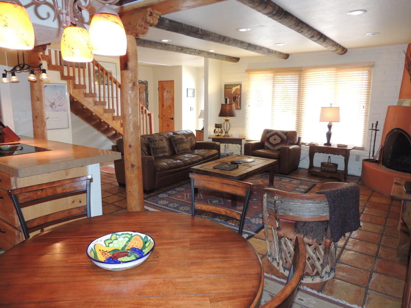 Completely remodeled 2 bedroom 2 1/2 bath condo with lovely, sensible upgrades to: Kitchen, All Baths, Flooring, Stairs, Appliances. Easy access (just up street from main office/front desk). Situated in the heart of Santa Fe 4 blocks from the Historic Plaza. Great rental history through onsite management. The property is 11 acres, just 100 condos, and there are several well located parking areas for quick access to most condos. Front office, indoor pool, park-like setting. A must see! FULLY FURNISHED. $282,500.00 MLS#201502341