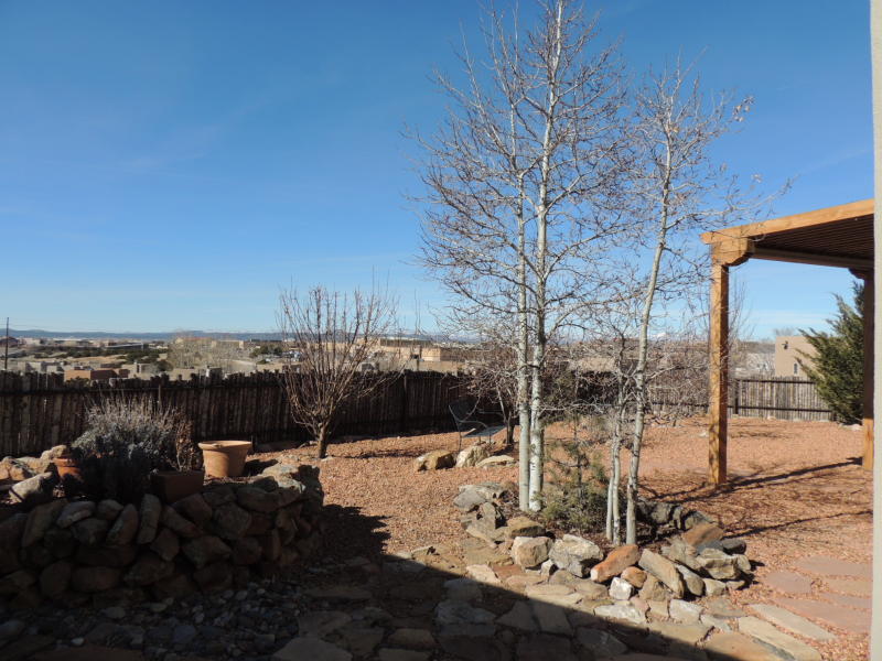 Aldea Beauty! Lovely home with an expansive and fabulous deck/portal to view the gorgeous Santa Fe Sunset. Spacious single level home in Aldea with tile flooring throughout, wood flooring in master bedroom, radiant heating, plaster walls, no interior steps, natural light, and a functional split floorplan that offers roomy entertaining space and privacy.Beautiful deck with wood accents and garden areas encourage outdoor living. Fully landscaped and enclosed front and back gardens add to the private, oasis feel of the property. Solid wood doors, beam & vigas, high ceilings, two fireplaces, and easy access to front and back gardens make this home inviting. $529,000.00 MLS#201404717