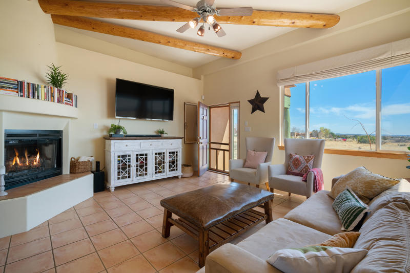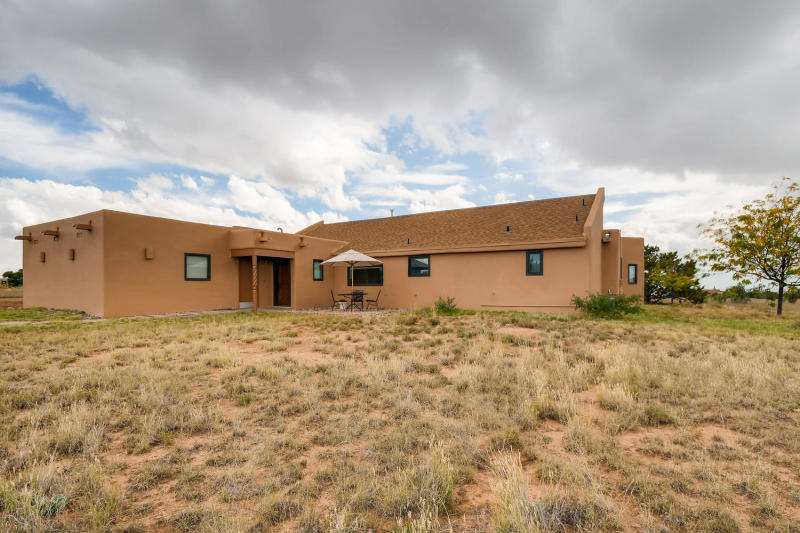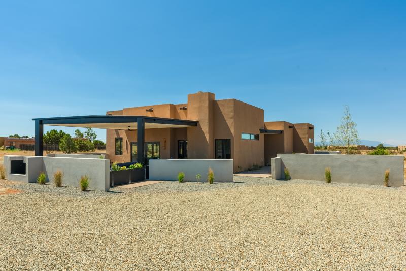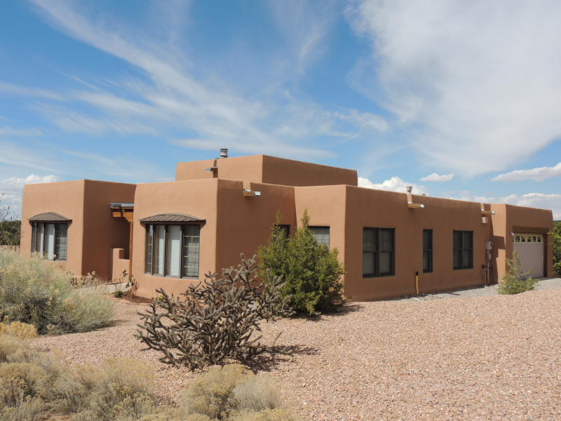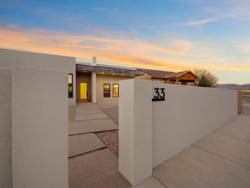 SOLD! Sunset Views! Beautiful SW Contemporary home -Newly Built in 2021- with Outstanding Jemez Mountain (Sunset) Views. Enter the property on a curving drive with beautiful, minimalist landscaping that includes fruit trees and native grasses. This Nearly New, single level home rests comfortably on 2.5 acres of privacy offering year round views and loads of natural light. ICF (insulated concrete forms) built home offers the best Green-Built features and low energy costs combined with all of the luxury amenities you expect: Gourmand's kitchen with granite island, dedicated formal dining area, open living concept with contemporary gas fireplace, and a split floor plan with three spacious bedrooms. Higher R value insulation, TPO roofing material, low VOC paint, gleaming concrete flooring, ductless mini split, high efficiency inset ceiling AC/Heat registers in every room.Oversized garage spaces with "shop" or other creative area, plenty of parking along driveway, and access to the natural walking trails nearby.$1,250,000.00 MLS #202341621