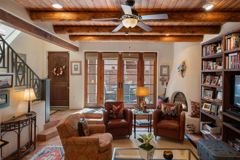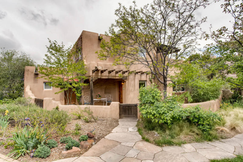 SOLD! Historic Canyon Road Downtown Canyon Road evokes in many the spirit of Santa Fe's Historic & Traditional architectural past. A subtle achievement by True North Builders, this natural blending of the modern & historic is a Classic Santa Fe, free-standing pied a terre for those who wish to bring into their lives this spirit of Santa Fe Style. Built in 2013, the property offers: Thick adobe and frame construction (mostly new, parts from an original structure), plaster walls, coved ceilings with vigas, a Kiva fireplace, and warm hued concrete flooring encouraging relaxation inside this beautiful condominium. With a split floorplan, two spacious bedrooms, modern baths, and a tidy kitchen outfitted for the gourmand in all of us - come nestle in a small compound, Alma del Canon, on Canyon Rd. Fully enclosed, landscaped garden. Two assigned off street parking spaces, Low HOA fees.$985,000.00 MLS#202002001 VIDEO WALKTHRU LINK https://youtu.be/c5P5d3pOZw4