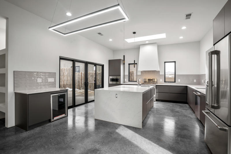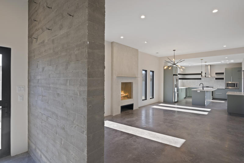 The open concept kitchen has an oversized Quartz island for food prep and hosting gatherings, there is warm colored concrete flooring throughout (no carpet), spacious laundry room, a secluded portal off of the primary suite & kitchen, extra high coyote and finished wall fencing, and an attached, spacious two car garage. One year builder's Warranty will be included with purchase.$655,000.00 MLS#202105115