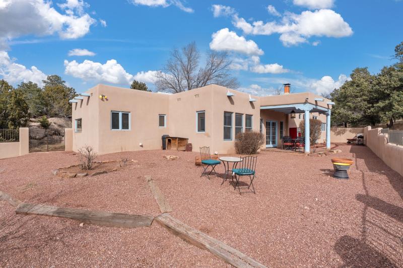 SOLD!: Beautiful, 15 Acre Horse Property nestled within a cozy valley surrounded by trees and boulder outcroppings, with main house & detached guest casita situated close to riding trails and just a 20 minute drive to Santa Fe. "Casa Caballos del Canoncito" offers Horse Lovers a spacious single level main house with traditional Santa Fe Style features and finishes. Warm colored plaster walls, high ceilings, three fireplaces, skylights, and multiple living areas offer flexible entertaining and relaxation spaces and are highlights of the home. The detached Guest Casita has its own entrance, kitchen, full sized living area with fireplace, and a full bath. Horse Facilities include: 4 stall barn (up to 6 horses are allowed), turn out, arena with split pipe fencing, two storage sheds for tack, hay. There is a private and separate driveway to access the stables and park a large trailer if needed. MLS 202405103 $1,125,000.00